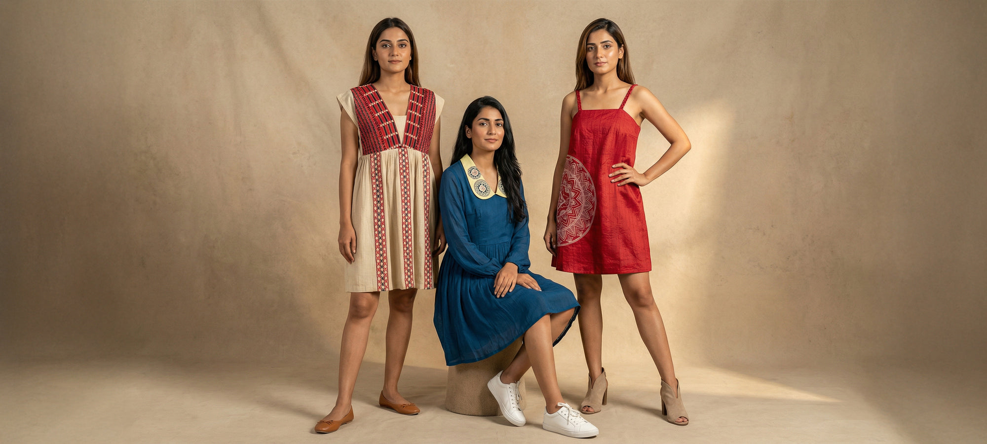 SSWAI brings you thoughtful fashion — whether it’s layering grace with vests and tops, stamping your authority in blazers, twirling gleefully in vibrant dresses, or redefining chic with co-ords. Come, explore our four categories to add glamour and charm that your personality truly deserves.